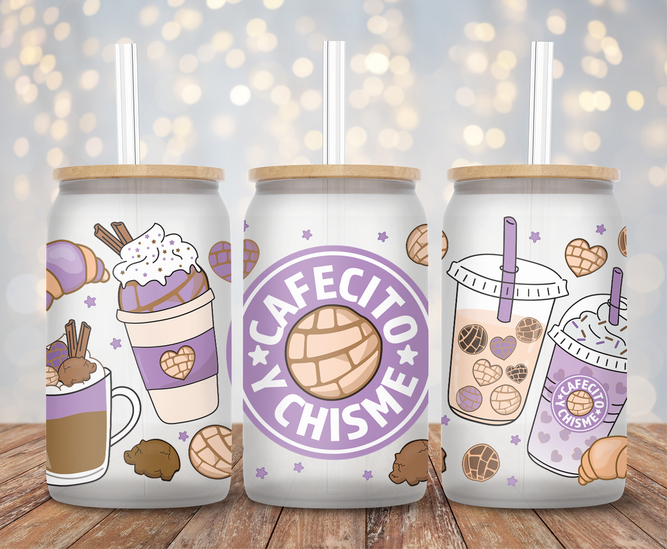 Lilac Cafecito Y Chisme - 16oz Cup Wrap